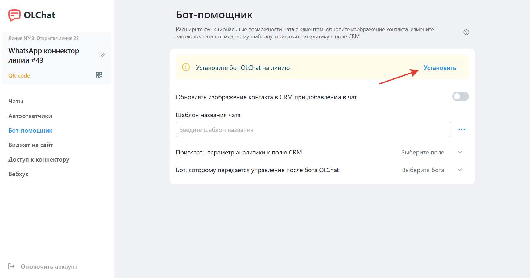 Для начала необходимо установить бот-помощник на линию.
