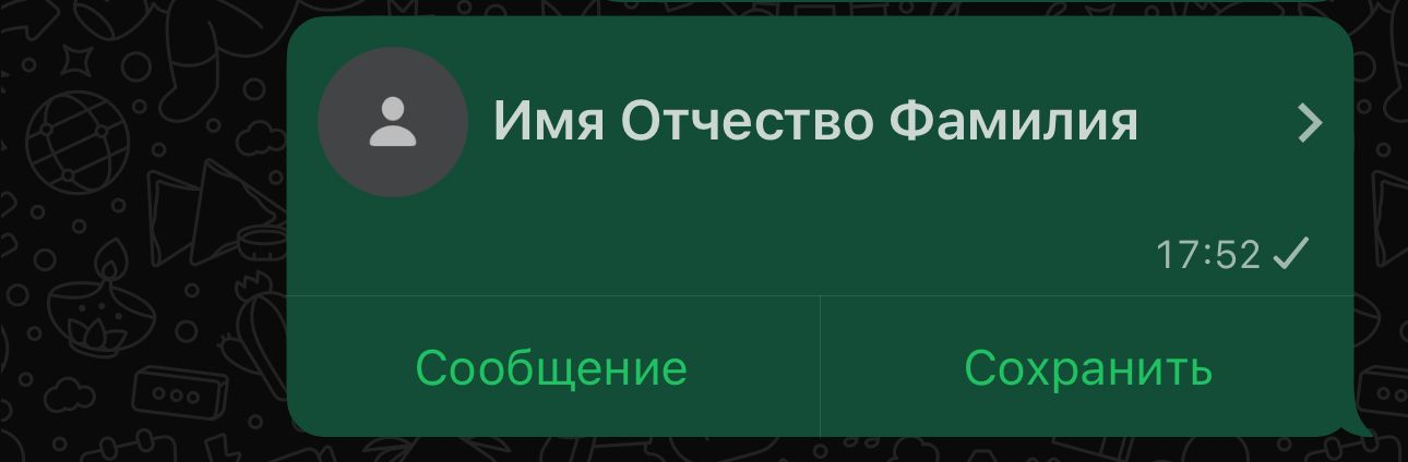 В чате WhatsApp карточка контакта будет иметь следующий вид: