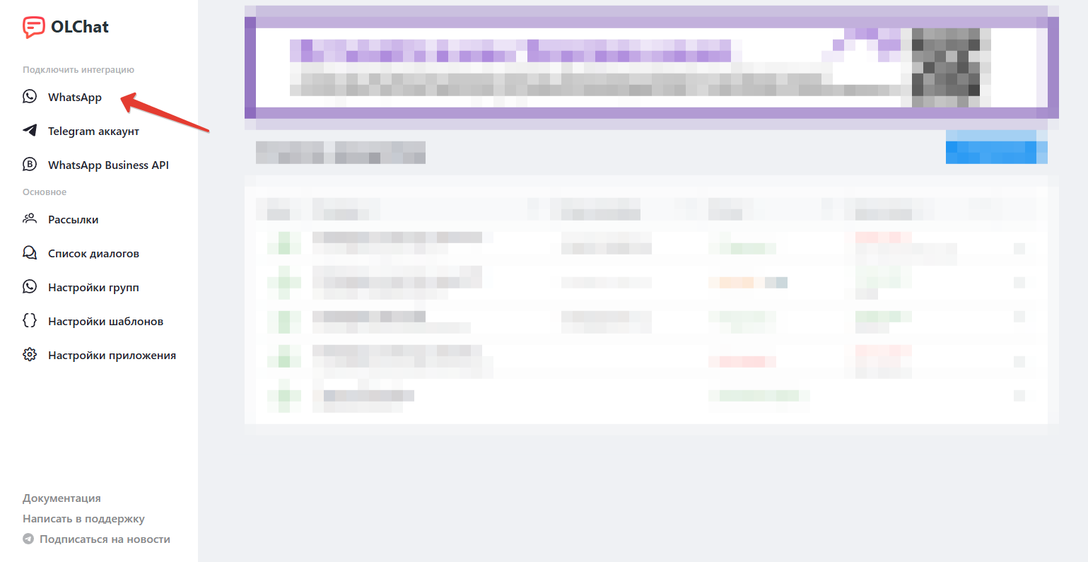 Чтобы подключить новый аккаунт WhatsApp, перейдите в приложение Олчат (в меню портала Битрикс24 слева) и выберите пункт «WhatsApp».